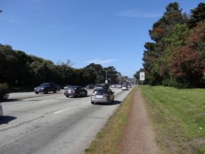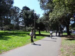| Avant d’y arriver, on passe par la panhandle (littéralement le “manche de poële”!), un parc situé entre deux rues parallèles |