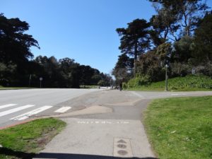 Puis l’arrivée au Golden Gate Park! Qui n’est pas très belle… En effet, celui-ci est traversé par des routes qui, bien que fermées le weekend, font que son entrée est un immense carrefour.