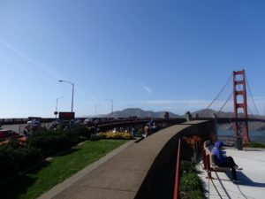 Etant complètement crevé et ayant bien mal aux jambes après cette longue journée de marche, j’ai emprunté le service de navettes (là encore gratuites) du Presidio pour aller directement jusqu’au pont.