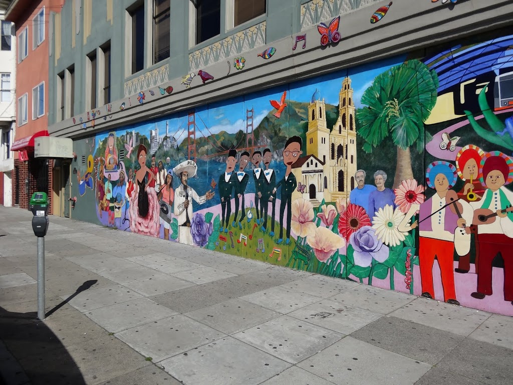 A savoir: le quartier de Mission est le l’endroit où vivent les his de San Francisco. Il est célèbre notamment parce que nombre de ses murs sont ornés de nombre de fresques plus ou moins jolies.