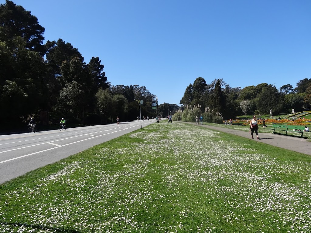 Puis l’arrivée au Golden Gate Park! Qui n’est pas très belle… En effet, celui-ci est traversé par des routes qui, bien que fermées le weekend, font que son entrée est un immense carrefour.