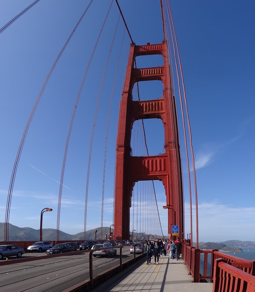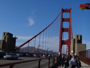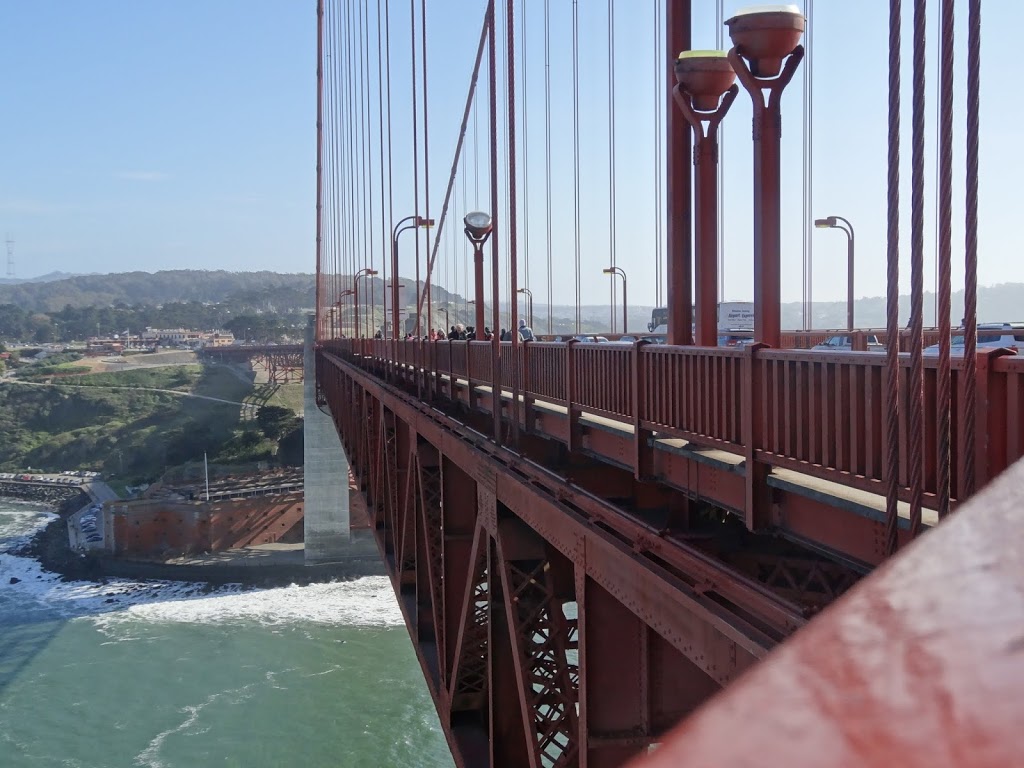 Etant complètement crevé et ayant bien mal aux jambes après cette longue journée de marche, j’ai emprunté le service de navettes (là encore gratuites) du Presidio pour aller directement jusqu’au pont.