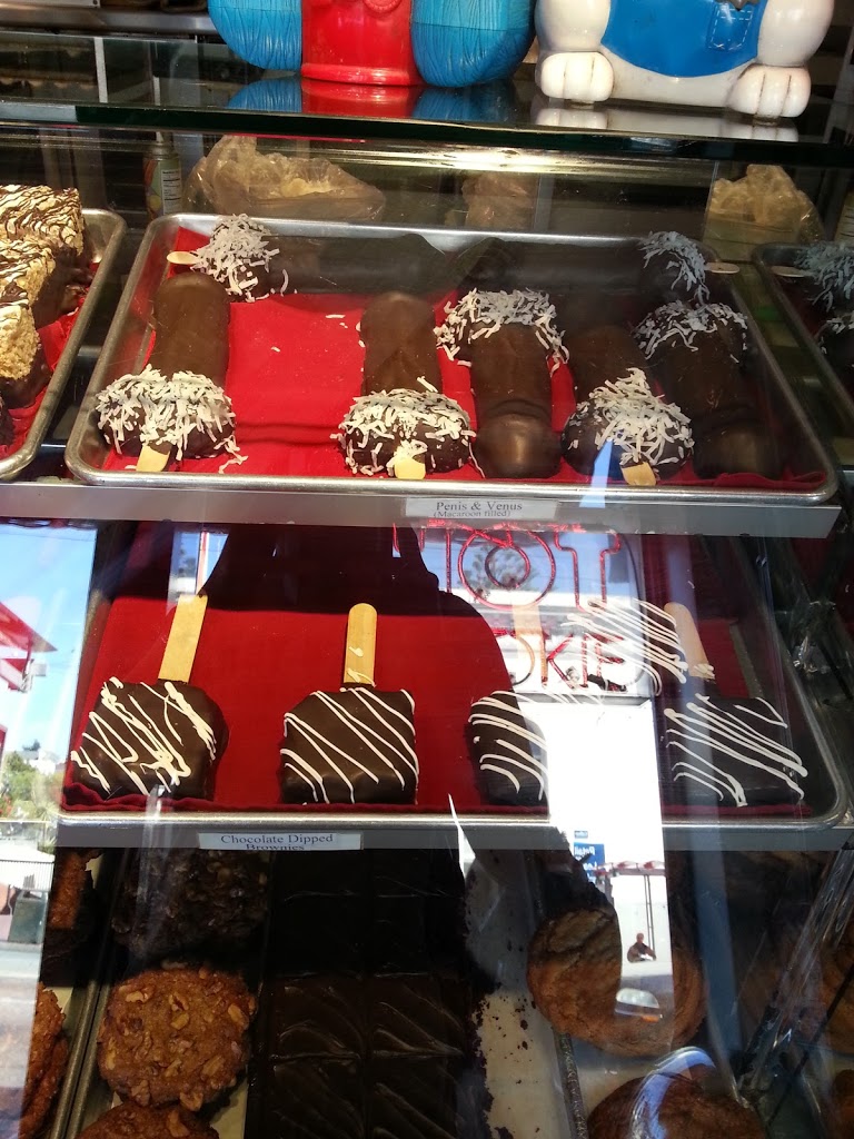 Pour info, le Hot Cookie à gauche vend des cookies délicieux (et étrangement est orné sur tous ses murs de photos d’hommes portant un slip orné du même nom, vendu dans le magasin!)