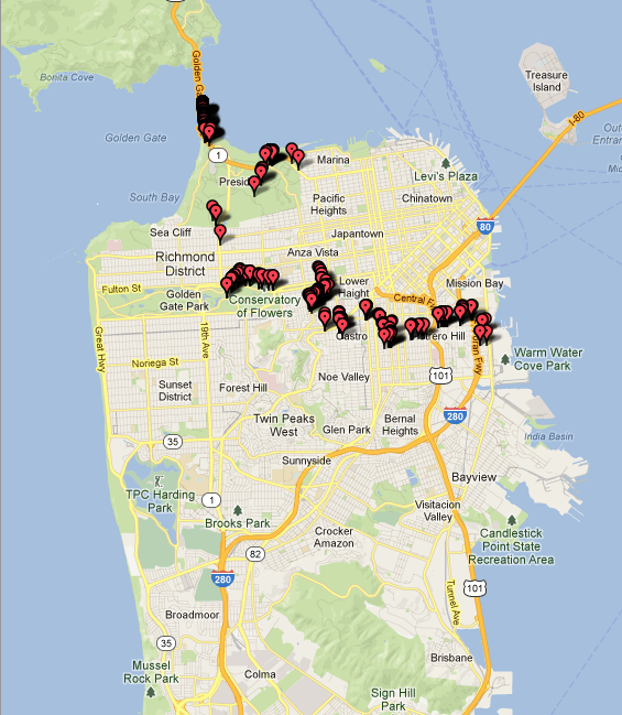 En résumé comme visible sur la droite, j’ai été jusqu’au Nord de San Francisco en passant par l’Ouest de la ville cette fois-ci.