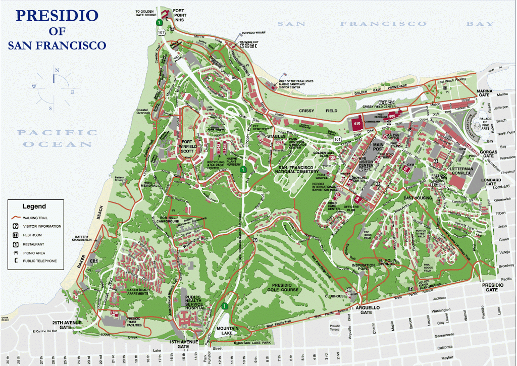 Le Presidio est le nom de la zone autour du Golden Gate du côté de San Francisco. C’est une anciennne base militaire qui a beaucoup servi durant la seconde guerre mondiale et fermée en 1989 puis devenue parc national depuis 1994.