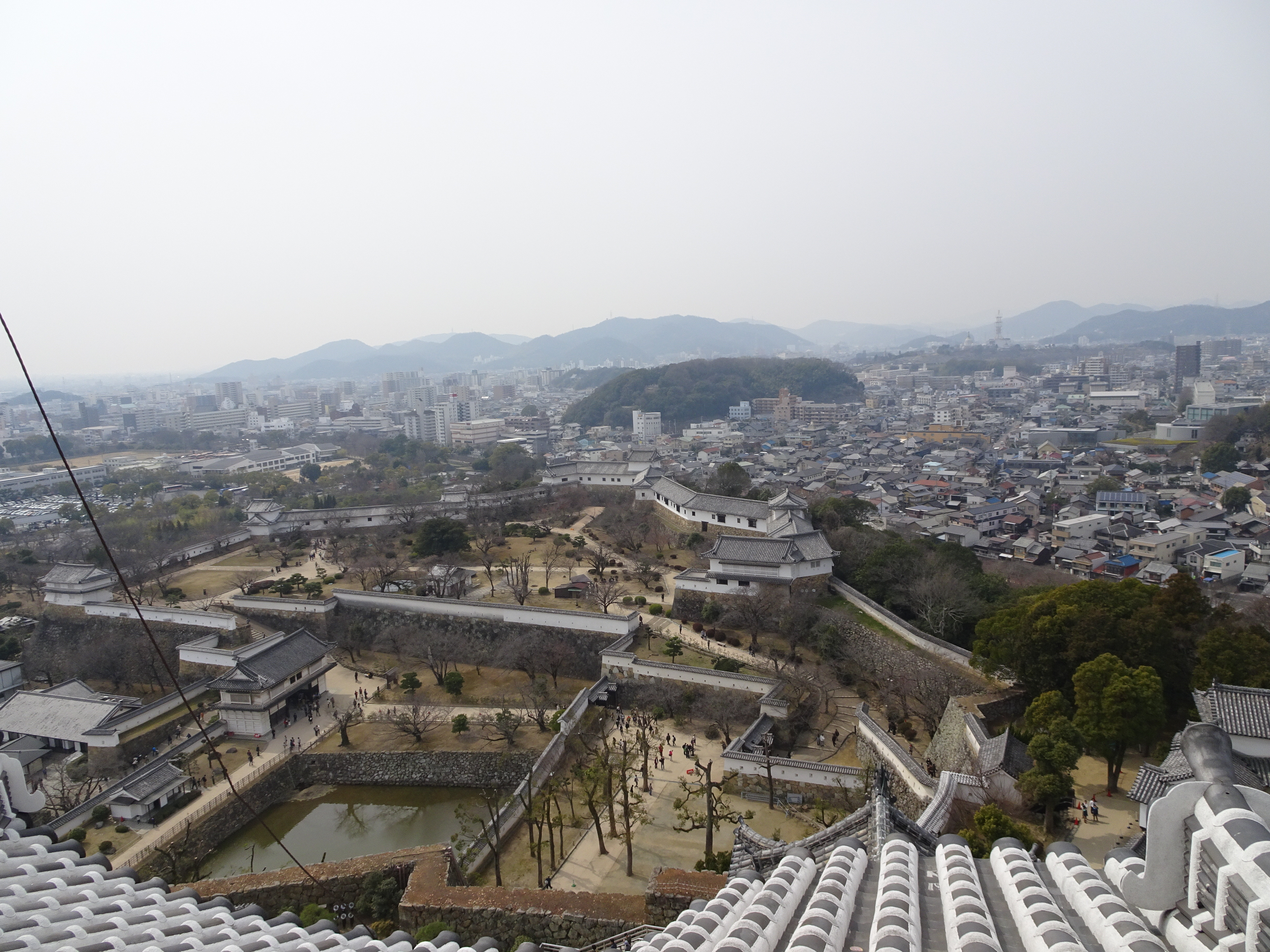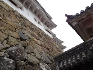 Après cette parenthèse musicale, retour aux choses sérieuses! Pour la petite histoire, classé au patrimoine de l’Unesco et surnommé “Château du Héron blanc” en raison de ses murs extérieurs en plâtre blanc, le château de Himeji est l’un des seuls à avoir conservé sa construction d’origine en bois. Comme vous l’avez vu à Hiroshima, la plupart des châteaux sont des reproductions en béton. Si Himeji est une ville fortifiée depuis le XIIème siècle, le château a lui été construit au en 1580 par Toyotomi Hideyoshi puis a abrité une cinquantaine de seigneurs.